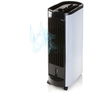 mobilní ochlazovač vzduchu • příkon 70 W • časovač • pojezdová kolečka • zvlhčovač • průtok vzduchu 300 m3/h • objem nádrže na vodu 4 l • ionizátor • funkce čištění vzduchu • automatické otáčení lamel • délka přívodního kabelu 180 cm • pojistka • 3 stupně foukání • 20×32,2×63,2 cm • hmotnost 5 kg