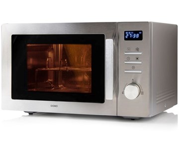 Mikrovlnná trouba Domo DO2334CG je opatřena skleněným otočným talířem o průměru 31,5 cm. Při používání můžete vybírat celkem z 5 stupňů výkonu a 10 automatických programů. Snadno upravíte i teplotu horkého vzduchu, a to v rozmezí od 150 do 240 °C. Výkon při použití mikrovln je 1000 W. Pokud dáte přednost grilu, pak výkon dosahuje hodnoty 1100 W. Často nestíháte? Pak vás jistě potěší, že spotřebič nabízí také speciální funkci pro rozmrazování pokrmů. |