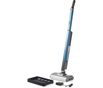 elektrický čistič podlah • vhodný pro všechny typy podlah • současně čistí, vytírá a suší • bezdrátový provoz • v provozu až na 30 minut • 14,4V Li-Ion baterie • 350ml zásobník na vodu • 180ml nádrž na nečistoty • 2 protiběžné rotační válce z mikrovlákna • hlučnost 75 dB • funkce samočištění • bezpečnostní pojistka • hmotnost 3,8 kg • příslušenství (nabíjecí adaptér, čisticí základna, kartáček na čištění)