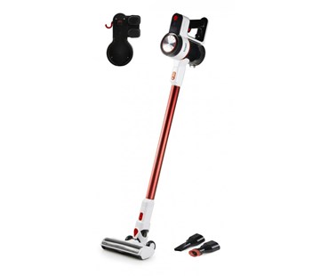 | Bez ohledu na to, zda jde o tvrdé podlahy nebo koberce, tento vysavač zvládne veškeré nečistoty a prach s minimálním úsilím. Díky svému bezdrátovému designu nabízí vysavač neomezenou volnost pohybu při úklidu a umožňuje dosáhnout i do obtížně přístupných míst. Napájení je zajištěno akumulátorem Li-ion 21,6 V DC, se kterým vydrží pracovat na jedno nabití až 25 minut. O stavu nabití baterie vás bude vždy informovat LED indikátor. Doba nabíjení činí 4–5 hodin. V příslušenství nechybí nabíjecí stanice. Vysavač můžete jednoduše transformovat do ručního aku vysavače a využít tak naplno jeho široké možnosti. |  |