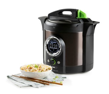 multifunkční hrnec • objem 6 l • příkon 1005 W • vyjímatelná nádoba s nepřilnavým povrchem (lze mýt v myčce nádobí) • přetlakový ventil • 11 programů tlakového vaření • 2 programy pomalého vaření • nastavení času od 1 do 120 minut • podsvícený LED displej • digitální ovládání • 2 termostaty • bezpečnostní prvky • funkce pro udržování teploty a ohřívání pokrmů • funkce pro restování a smažení • funkce odpařování • odnímatelný přívodní kabel o délce 1,27 m • příslušenství (parní koš, skleněná poklice, nerezový tácek, napařovací mřížka, kartáček na čištění těsnění, náhradní těsnění)