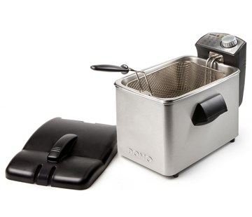 Domo DO457FR je velkokapacitní fritéza v moderním nerezovém provedení disponující úžasně velkou fritovací mísou, která se svou kapacitou dokáže pojmout až 3 l oleje. Její velkou předností je také zvýšený fritovací koš.