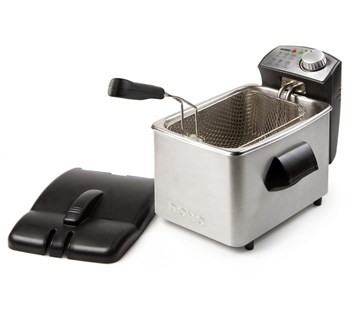 Domo DO458FR je velkokapacitní fritéza v moderním nerezovém provedení disponující úžasně velkou fritovací mísou, která se svou kapacitou dokáže pojmout až 4 l oleje. Její velkou předností je také extra velký fritovací koš.
