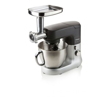 kuchyňský robot • příkon 1000 W • 4,5l pracovní mísa • vhodný pro šlehání, míchání, hnětení, mixování, mletí, krájení, krouhání, strouhání • planetární míchání • skleněný mixér • tichý provoz • příslušenství - šlehací metla, míchací metla, hnětací hák, 1,5l mixér, mlýnek na maso, krouhač zeleniny, průhledné víko, převodovka • hmotnost 8,6 kg