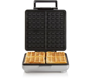 | Belgický vaflovač Domo DO9250W vám dokáže najednou připravit čtyři čtvercové vafle (11 × 11 cm, výška 2 cm). Oceníte na něm přitom nepřilnavý povrch pečicích ploch s certifikací ILAG Colflon Ultra, protiskluzové nožičky i rukojeť a vnější povrch CoolTouch, o který se hned tak nespálíte. Praktické jsou i světelné kontrolky, které vás informují o zapnutí a nahřátí přístroje. |