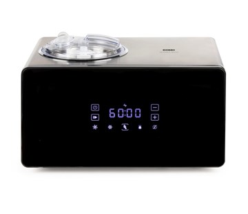 | Zmrzlinovač vypadá velmi elegantně. V černé barvě s nerezovým tělem se bude vyjímat v každé kuchyni. Je opatřen velkým dotykovým panelem, na kterém si zobrazíte vybraný program, zbývající čas, grafické znázornění nastavené rychlosti míchání a aktuální tuhosti zmrzliny. Dotykové ovládací prvky – vypnutí zmrzlinovače, přerušení a spuštění programu, výběr programů a jejich nastavení. Přístroj je vybaven čtyřmi automatickými programy, kterými jsou Zmrzlina, Míchání, Chlazení a Jogurt. Dobu běhu chladicích programů lze upravit v rozmezí 5 – 70 minut. Dobu běhu programu jogurtovače si můžete upravit v rozmezí 4 – 24 hodin. |  |