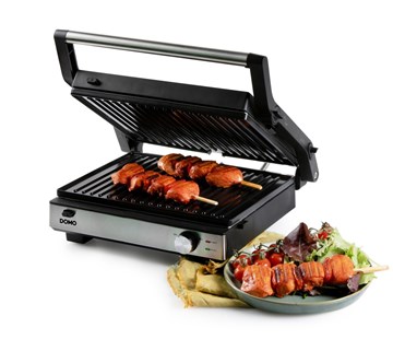 Kontaktní gril a vaflovač v jednom. Odnímatelné desky s keramickým povrchem bez obsahu PFAS látek. Gril lze otevřít až do roviny!