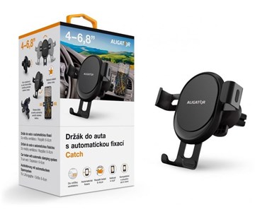 Držák do auta s automatickou fixací HA18 Aligator Catch do ventilační mřížky, univerzální. Gravitační univerzální držák pro mobilní telefony do auta ve velmi elegantním provedení nebrání řidiči ve výhledu a je kompatibilní s většinou mřížek ventilátorů.