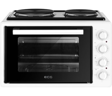stolní trouba • objem 35 l • příkon 1400 W • 2 elektrické varné plotýnky (průměr 180 mm a 145 mm, výkon 1500 W a 1000 W) • možnost současného používání trouby a 1 plotýnky • otočné ovládání • nastavení teploty trouby 90–250 °C • osvětlení vnitřního prostoru trouby • bezpečnostní dvířka s dvojitým sklem • horní ohřev, spodní ohřev, horní a spodní ohřev • příslušenství – plech na pečení a rošt • 90cm přívodní kabel • hmotnost 10,8 kg • 41,6 × 50,5 × 33,05 cm