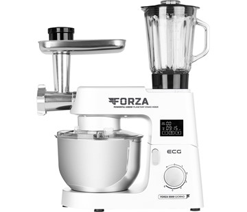 Kuchyňský robot ECG Forza 5500 Giorno vám pomůže s mnoha různými činnostmi. Jeho výbava je totiž opravdu bohatá. Posuďte sami: využívat můžete míchací hák na těsto, šlehací hák i šlehací metlu z nerezové oceli. Také máte k dispozici mlýnek na maso se 3 vyměnitelnými disky pro mletí různých druhů masa, bubnové struhadlo nebo speciální tvořítko na cukroví či sušenky. A samozřejmě nesmí chybět ani klasický mixér s kvalitními čepelemi z nerezové oceli a skleněnou nádobou (o objemu 1,5 l). Pokud máte rádi italskou kuchyni, jistě oceníte i možnost dokoupení speciálního výrobníku těstovin (Pasta Maker). |