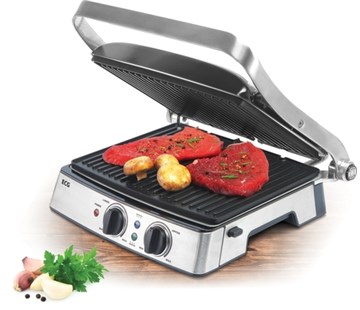 Kontaktní gril ECG 200 zpříjemní vaše grilování po celý rok. Je ideální pro přípravu různých druhů masa, zeleniny, ryb či sendvičů. Gril můžete využívat ve třech modulacích a to jak pro klasické grilování, tak pro zapékání či Barbeque. Dokonalé propečení pokrmu zaručí 2 nezávislé termostaty a možnost zahřátí až na 220 °C.