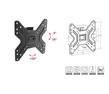 | Chcete zavěsit televizor na zeď? Držák ECG LD 174203 je určený pro televizory s úhlopříčkou v rozpětí od 17 do 42“. Díky skvělé nosnosti až 25 kg se nemusíte bát, že by televizi neunesl. Rozměr pro uchycení tzv. VESA je u tohoto modelu 200×200. Výhodou držáku je také možnost nastavení vzdálenosti od zdi 48 mm. |