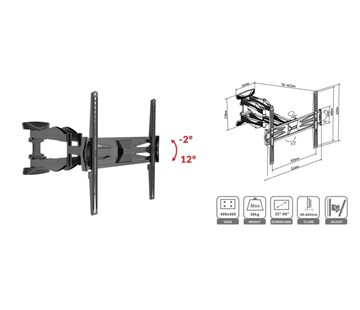 | Chcete zavěsit televizor na zeď? Držák ECG LD 326001 je určený pro televizory s úhlopříčkou v rozpětí od 32 do 60“. Díky skvělé nosnosti až 30 kg se nemusíte bát, že by vaši televizi neunesl. Rozměr pro uchycení tzv. VESA je u tohoto modelu 400×400. Výhodou držáku je také možnost nastavení vzdálenosti od zdi a to od 56 do 465 mm. Nadstandardem je pak nastavitelný sklon držáku, který zajišťuje maximální komfort při sledování oblíbených pořadů. Velkou výhodou tohoto modelu je také speciální prostor pro uložení kabelů. |