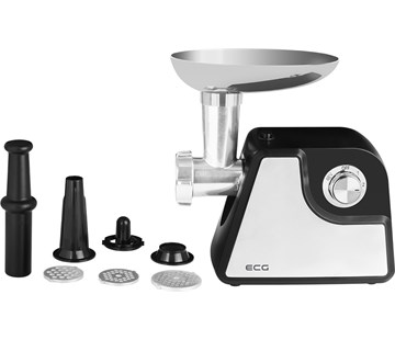 elektrický mlýnek na maso • příkon 1340 W • 2 rychlosti • zpětný chod funkce REVERS • 3 mlecí kotouče (3, 5, 8 mm) • snadné a rychlé sestavení • napájecí kabel 0,8 m • příslušenství: pěchovadlo, šnek, čepele, 3 druhy kotoučů, strojek s jícnem, pojistná matice, nástavec na klobásy, nástavec na kebbe a separátor