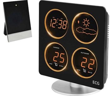 Meteorologická stanice s možností zavěšení na zeď. Meteorologická stanice ECG MS 005 O má kvalitní rádiem řízené hodiny a umí měřit vnitřní i venkovní teplotu. S meteorologickou stanicí ECG MS 005 O získáte i přesné informace o vývoji teploty. Meteorologická stanice ECG MS 005 O se snadno přizpůsobí vašim očím volbou intenzity podsvícení. Díky budíku meteorologické stanice ECG MS 005 O ráno nezaspíte. S meteorologickou stanicí ECG MS 005 O získáte informace o vnějším tlaku vzduchu. Meteorologická stanice ECG MS 005 O v černém designu.