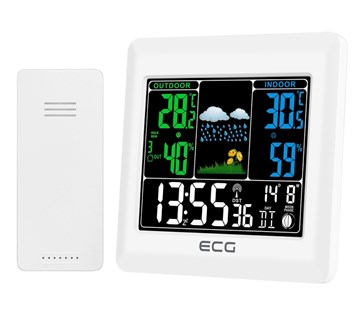 Kromě běžných teplotních údajů a informací o počasí funguje meteostanice ECG MS 300 White také jako hodiny (zobrazuje hodiny, minuty, sekundy), budík či kalendář. V případě hodin si můžete dle preferencí nastavit 12 nebo 24hodinový formát. Využít lze také budík, kdy meteostanice disponuje též funkcí přispání o 5 minut. Na displeji nechybí ani informace o datu. Bonusem je zobrazení 8 fází Měsíce. Nechybí zde ani praktický indikátor stavu baterie. Součástí balení je kromě samotné meteostanice také adaptér a čidlo. Meteostanice a čidlo mezi sebou dokážou bezdrátově komunikovat až do vzdálenosti 30 metrů. |