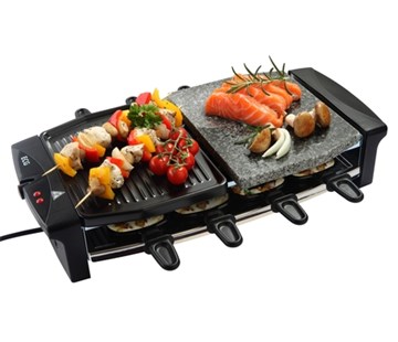 Ke grilu navíc dostanete 8 pánviček s nepřilnavým povrchem k přípravě raclette s tepelně izolovanými rukojeťmi a recepty s povedenými tipy, které udělají z Vašeho grilování doslova umění.