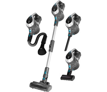 tyčový vysavač • 25,9V Li-Ion baterie • objem prachové nádoby 1 l • doba nabíjení 4,5 h • výdrž na jedno nabití až 40 min • LED osvětlení vysávané plochy • odnímatelný ruční vysavač • vysoce účinná filtrace (HEPA filtr H11) • příslušenství – ohebná kovová trubice, štětinový rotační kartáč, prodlužovací hadice s hřebenem na srst domácích mazlíčků, mini Pet turbo kartáč, zúžená hubice 2 v 1 • hmotnost 3,81 kg