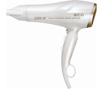 Vysoušeč vlasů je dnes již nezbytným pomocníkem při každodenní úpravě vzhledu. ECG VV 2200 je výkonný vysoušeč v elegantním bílém provedení v zajímavé kombinaci se zlatými prvky. Jedná se o model vybavený celou řadou praktických vychytávek, které přispívají k co nejvyššímu komfortu i bezpečnosti při obsluze.