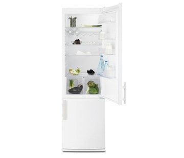 Lednička kombinovaná s mrazničkou dole ELECTROLUX EN 4000 ADW v energetické třídě A+ s objemem chladničky 285 litrů, mrazničky 90 litrů, akumulační dobou 20 hodin a mrazícím výkonem 4 kg za 24 hodin.