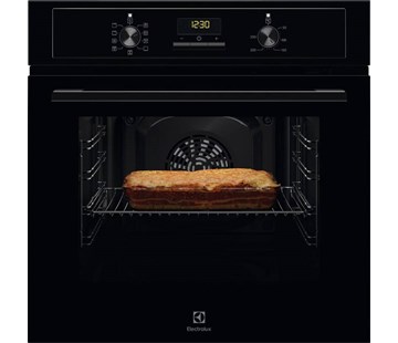 vestavná trouba • objem 65 l • příkon 2090 W • možnost pečení na 2 úrovních najednou • zasunovací ovladače • elektronické nastavení trouby • halogenové osvětlení • hladký smalt • funkce: spodní ohřev, ventilátor, gril, gril + ventilátor, kruhové těleso + ventilátor, horní + spodní ohřev, horní + spodní ohřev + ventilátor • časovač • displej • 59×59,4×56 cm