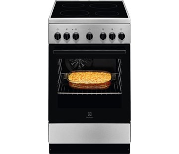 Sporák; Electrolux LKR540066X; Typ: Sklokeramika; Šířka (cm): 50; Hob2Hood: Ne; Parní funkce: Není; AirFry: Ne: Samočištění: Žádné; Vnitřní objem čistý (l): 54; Ovládaní: Otočné ovladače; Typ trouby: Multifunkční; Barva: Nerez; VxŠxH (mm): 858x500x600