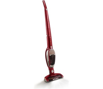 Moderní bezsáčkový vysavač ELECTROLUX ZB 2943 Ergo Rapido 2v1 umožňuje ruční i tyčové použití. Je vybaven rotačním kartáčem a patentovaným systémem BRUSH ROLL CLEAN. Cyklónová jednotka vytváří dostatečné podmínky pro vysávání na všech typech povrchu a LED diody integrované v podlahové hubici dávají perfektní přehled o uklízeném povrchu. Vysavač funguje na bateriový provoz. Díky akumulátoru Li-Ion 18V vydrží spotřebič až 35 minut, což by mělo stačit i na úklid opravdu velkých domácností prostor. Nádoba na vysáté nečistoty a prach má objem 0,5 litrů a díky systému snadného odejmutí bude vysypání nádoby otázka několika málo chvil. Obsahem balení je praktické příslušenství v podobě dobíjecího stojánku, kartáčku a štěrbinové hubice. Potěší také nízká váha spotřebiče, kterou oceníte především při ručním používání. Elegantní červené metalické barevné provedení vypadá skvěle a velmi moderně.