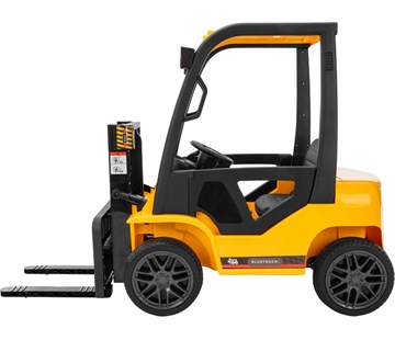 dětský vysokozdvižný vozík • doporučený věk 3-8 let • maximální rychlost 5 km/h • 3 rychlosti • celkový výkon 90 W (2× 45W motory) • baterie 12 V/10 Ah • napětí 12 V • jedno místo k sezení • typ a velikost kol: 24" EVA materiál • výdrž na jedno nabití baterie 1–2 hodiny • max. nosnost 30 kg • max. nosnost vidlice pro náklad 10 kg • rozměry produktu: 146 × 63 × 101 cm • rozměry balení: 99 × 64 × 52 cm • hmotnost (Net/Gross) 23,8 kg/27,7 kg