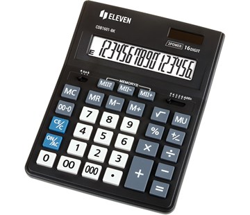 Stolní kalkulačka: 16 mísný displej, 4 tlačítka paměti : MC, MR, M+, M-, výpočet marže [MU], Zaokrouhlování, Odmocnina [?], Dvě paměti [MII], Změna [+/-], Desetinná čárka, Procenta [%], Dvojitá nula [00], Dvojí napájení: battery & solar