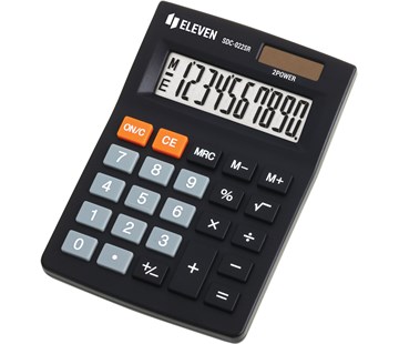 Stolní kalkulačka: 10 místný displej, 3 paměťové klávesy: MRC, M+, M-, Odmocnina [?], Změna [+/-], Procenta [%], Dvojí napájení: battery & solar