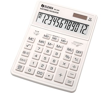Stolní kalkulačka: 12 místný displej, 4 paměťové klávesy: MC, MR, M+, M-, Výpočet marže [MU], Zaokrouhlování, Odmocnina [?], Dvojitá paměť [MII], Změna [+/-], Desetinná čárka, Dvojí napájení: battery & solar