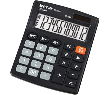Stolní kalkulačka: 12 místný displej, 3 paměťové klávesy: MRC, M+, M-, Změna [+/-], Mazání, Procenta [%], Dvojitá nula [00], Dvojí napájení: battery & solar