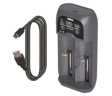 univerzální nabíječka Li-Ion baterií • připojení přes USB • napájení USB 5 V/2 A • typ nabíjených baterií Li-Ion, LiFePO4, NiMH, NiCd • 2 nabíjecí kanály • současné nabíjení 2 baterií • ochrana proti přepólování • detekce alkalických baterií • velikost nabíjených článků AAA, AA, C, SC • detekce poškozených baterií • kabel je součástí balení