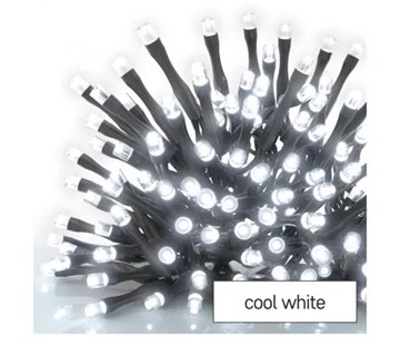 světelný řetěz • napájecí zdroj • barva světla: studená bílá • délka 10 m • možnost vnitřního i venkovního použití • časovač • napájení síťovým adaptérem • LED technologie • 100 diod • mezera mezi diodami 10 cm • velikost LED 5 mm • možnost připojení dalších komponentů systému CONNECT STANDARD • stupeň krytí IP44