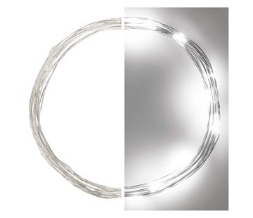 produkt nano řetěz, barva světla studená bílá, rozměr 1,9 m, použití vnitřní, časovač , dálkový ovladač ne, funkce svítí, typ napájení baterie (2× AA), tvar nano, počet LED 20, LED mezera 10 cm, velikost LED 3 mm (nano), délka přívodu 0,5 m, pro výšku stromu neuvádí se, barva drátu stříbrná,