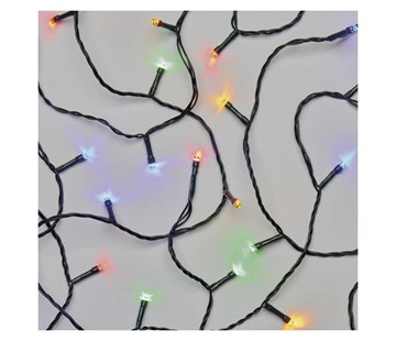 produkt řetěz, barva světla multicolor, rozměr 12 m, použití venkovní i vnitřní, časovač , dálkový ovladač ne, funkce svítí, typ napájení síťový adaptér, tvar klasický, počet LED 120, LED mezera 10 cm, velikost LED 5 mm, délka přívodu 5 m, pro výšku stromu 170 cm, barva drátu zelená,