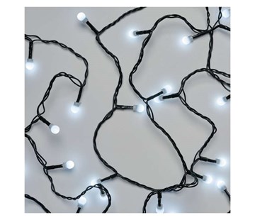 produkt řetěz, barva světla studená bílá, rozměr 20 m, použití venkovní i vnitřní, časovač , dálkový ovladač ne, funkce svítí, typ napájení síťový adaptér, tvar kulička, počet LED 200, LED mezera 10 cm, velikost LED 10 mm, délka přívodu 5 m, pro výšku stromu 210 cm,