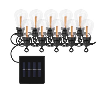 t girlanda, barva světla teplá bílá, rozměr 5 m, použití venkovní i vnitřní, typ napájení baterie (1× NiMH, 800 mAh, AA) Solar, zdroj svícení LED, počet LED 10, délka přívodu 0,5 m, barva drátu černá, příkon 0,6 W, výstupní napětí 1,2 V DC,IP44, materiál plast, záruka 2 roky