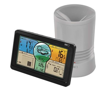 meteostanice • displej 16,9×9,4 cm • barometr • dosah čidla až 50 m • venkovní teplota -30 °C až +60 °C • vnitřní teplota -10 °C až +50 °C • předpověď počasí • hodiny řízené DCF signálem • min. a max. teplota • LED podsvícení barevného displeje • datum • kalendář • budík, opakované buzení • srážkoměr • funkce Comfort view