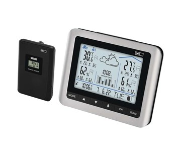 meteostanice • displej s bílým podsvícením • měření vnitřní a vnější teploty, vlhkosti, tlaku • datum • kalendář • budík s funkcí opakovaného buzení • hodiny řízené DCF signálem • venkovní teplota -20 až +60 °C • vnitřní teplota 0 až +50 °C • venkovní vlhkost 20 % až 99 % RV • měření teploty s přesností na 0,1 °C • dosah čidla až 60 metrů • napájení – 3 baterie typu AA (hlavní jednotka), 2 baterie typu AAA (venkovní čidlo)