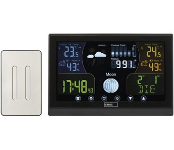 | K dalším přednostem domácí meteostanice EMOS patří ukazatel vnitřní a venkovní vlhkosti, zobrazení trendu teploty, tlaku a fází měsíce a také barometr, díky němuž budete mít přehled o atmosférickém tlaku. Můžete se spolehnout i na teplotní výstrahu a na funkci korekce nadmořské výšky. |  |