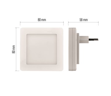 zdroj světla LED, maximální světelný tok 5 lm, maximální dosvit 3 m, barva světla teplá bílá, napájení 230 V~/50 Hz, vypínač , režim svícení High/Low/off, automatické zapnutí/vypnutí , fotosenzor , pohybové čidlo ne, max. výstup celkem neuvádí se, rozměr 80 × 57 × 80 mm, záruční doba 2 roky