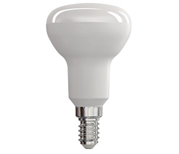 technologie: LED, patice (uchycení žárovky): E14, kategorie/řada: CLASSIC, tvar: Reflektor R50, příkon: 6 W, barva světla: teplá bílá, teplota chromatičnosti: 2 700 K, světelný tok/svítivost: 470 lm, světelná účinnost: 78 lm/W, náhrada za žárovku: 40 W, energetická třída: A+, úhel vyzařování: 120°, životnost: 30 000 hodin, záruční doba: 3 roky, účiník: 0,5, počet spínacích cyklů: 25 000, index podání barev (CRI): Ra >80, startovací doba: 0,1 s, typ čipů: 2835, počet čipů: 6, napětí: 230 V~/50 Hz, rozměr: 50 × 85 mm, prodejní obal: 1 ks, krabička