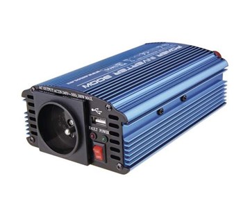 max. zatížení výstupu (stálé): 300W • max. zatížení výstupu (ve špičce): 600W • nominální vstupní napětí (DC): 12V • nominální výstupní napětí (AC): 230V, 50Hz • zvlnění výstupního napětí má tvar modifikované sinusoidy • ochrana proti přehřátí, zkratům, přepětí, přetížení a vybití baterie • 2 x náhradní pojistka 40A (součástí balení) • napájení: napájecí kabel s očky a svorkami (součástí balení) • pracovní teplota: -20°C až +50°C • USB 2.0 nabíjecí výstup 800mA •