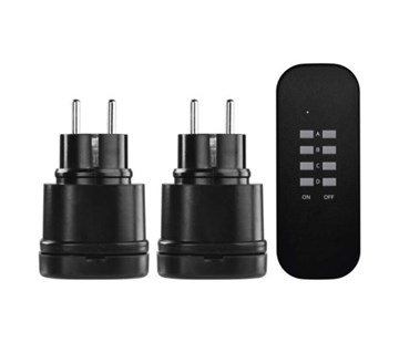 barva: černá|dálkový ovladač: napájení 1× CR2032 3 V (součástí balení)|dětské clonky: ano|dosah signálu: až 30 m ve volném prostoru|easy learning: není nutné párování zásuvek a žádná instalace, zásuvka se spáruje s ovladačem automaticky po stlačení tlačítka na dálkovém ovladači.|krytí: IP44|materiál: plast|max. zátěž: 3 000 W|možnost ovládání: až 4 zásuvky|napětí/proud: 250 V~/13 A max.|počet pólů: neuvádí se|počet zásuvek: 1× 2P + PE|pozice ochranného kontaktu: neuvádí se|přenosoná frekvence: 433,92 MHz|prodejní obal: 1 ks, krabička|produkt: dálkově ovládané zásuvky, 2 zásuvky + 1× dálkový ovladač|typ: SCHUKO|venkovní použití: ano|vypínač: ne