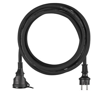 délka: 5 m, počet zásuvek: 1× 2P + PE, IP44, napětí/proud: 250 V~/16 A max., max. zátěž: 3 680 W, typ izolace: guma/neopren, barva: černá, vodič: H07RN-F3G 1,5 mm2, dětské clonky, materiál zásuvky a vidlice: plast/guma, prodejní obal: 1 ks, fólie, záruční doba: 2 roky