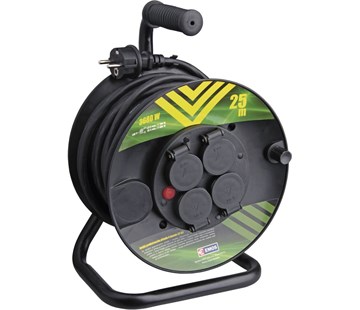 délka: 25 m, krytí: IP44, počet zásuvek: 4× 2P + PE, prodejní obal: 1 ks, průřez vodiče: 1,5 mm?, tepelná pojistka: ano, typ izolace: guma, vodič: H05RR-F3G, záruční doba: 2 roky, zatížení navinutého 230 V~: 4,8 A max./1 100 W, zatížení rozvinutého 230 V~: 16 A max./3 680 W, produkt: buben s pohyblivým středem, max. zátěž: 3 680 W