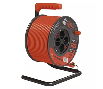 délka: 25 m, krytí: IP20, počet zásuvek: 4× 2P + PE, prodejní obal: 1 ks, průřez vodiče: 1,5 mm?, tepelná pojistka: ano, typ izolace: PVC, vodič: H05VV-F3G, zatížení navinutého 230 V~: 4,8 A max./1 100 W, zatížení rozvinutého 230 V~: 16 A max./3 680 W, produkt: buben s pohyblivým středem, max. zátěž