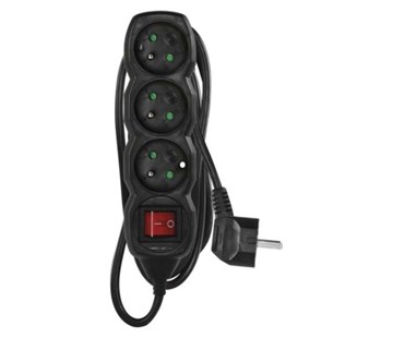 barva: černá|délka: 3 m|dětské clonky: ano|krytí: IP20|materiál zásuvky a vidlice: plast|max. zátěž: 3 680 W|napětí: 250 V~|počet zásuvek: 3|prodejní obal: 1 ks, závěs|proud: 16 A max.|průřez vodiče: 1,5 mm2|typ izolace: PVC|USB výstup: ne|vodič: H05VV-F3G|vypínač: ano