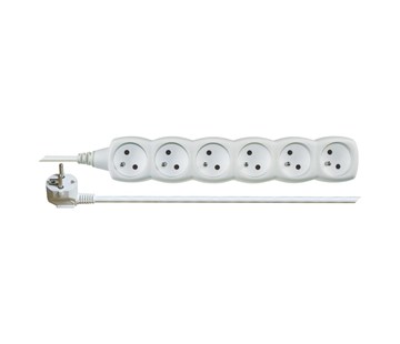 délka 3 m, počet zásuvek 6× 2P + PE, max. zátěž 2 300 W, typ izolace PVC, barva bílá, dětské clonky ano, záruční doba 2 roky